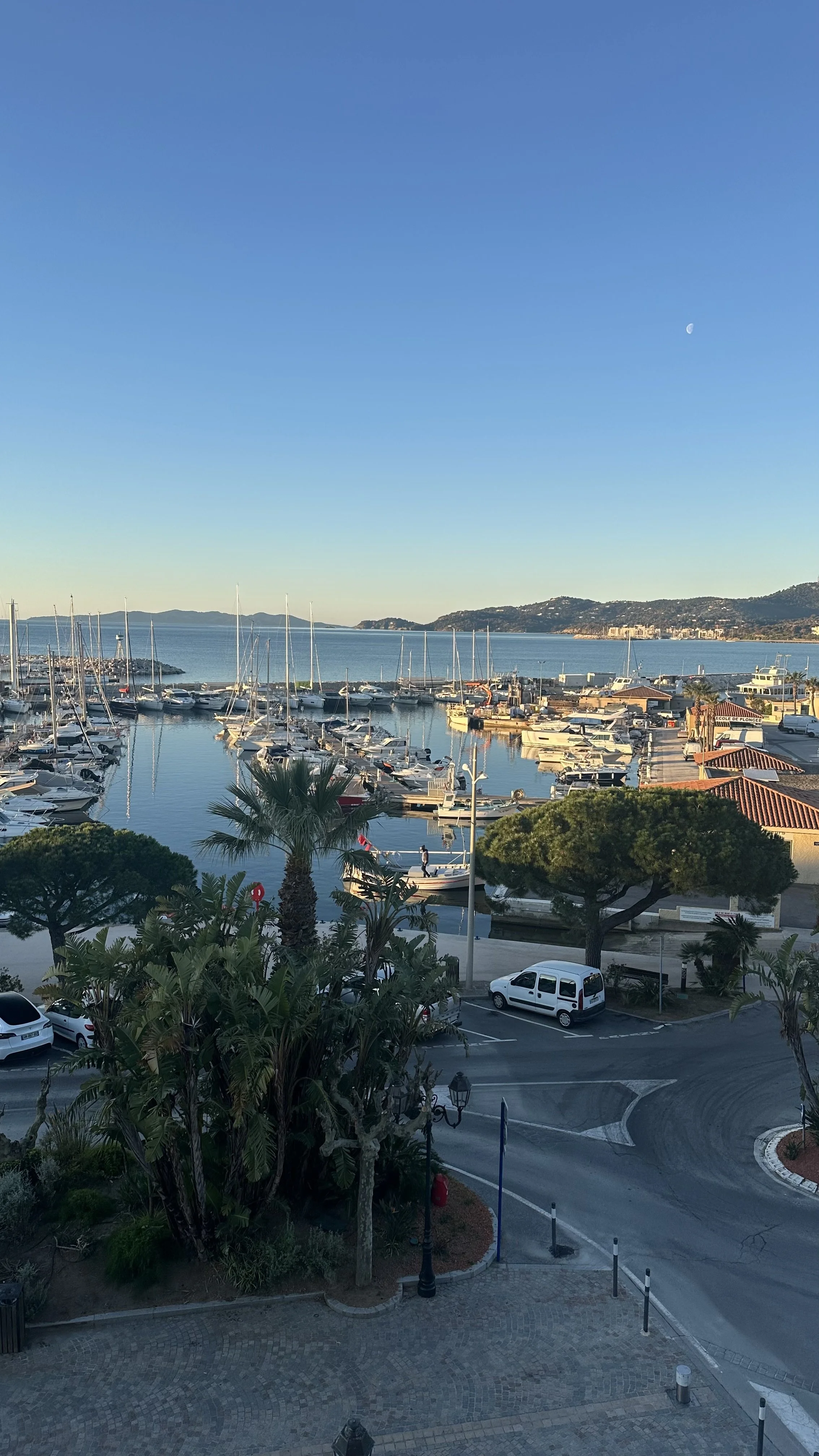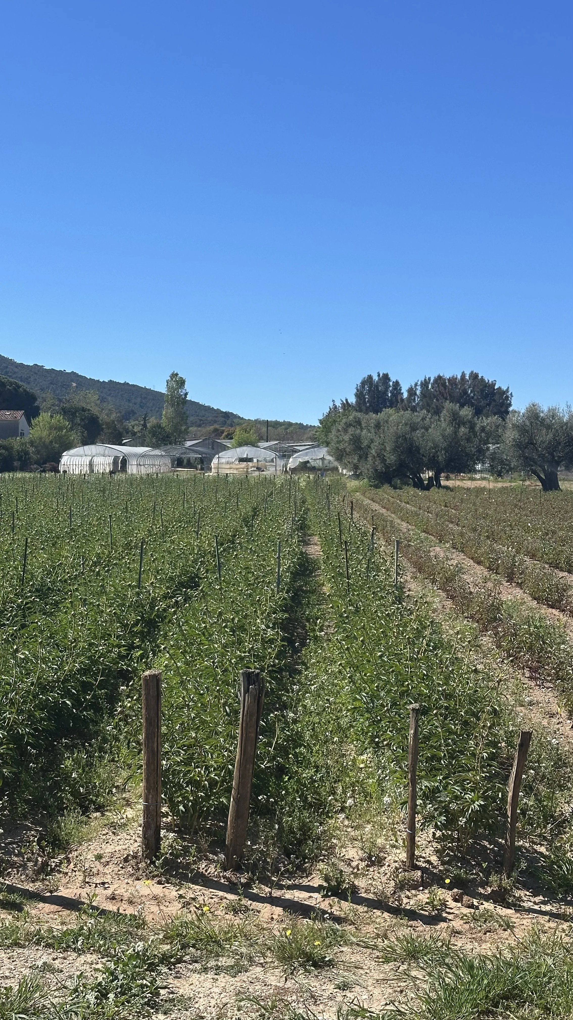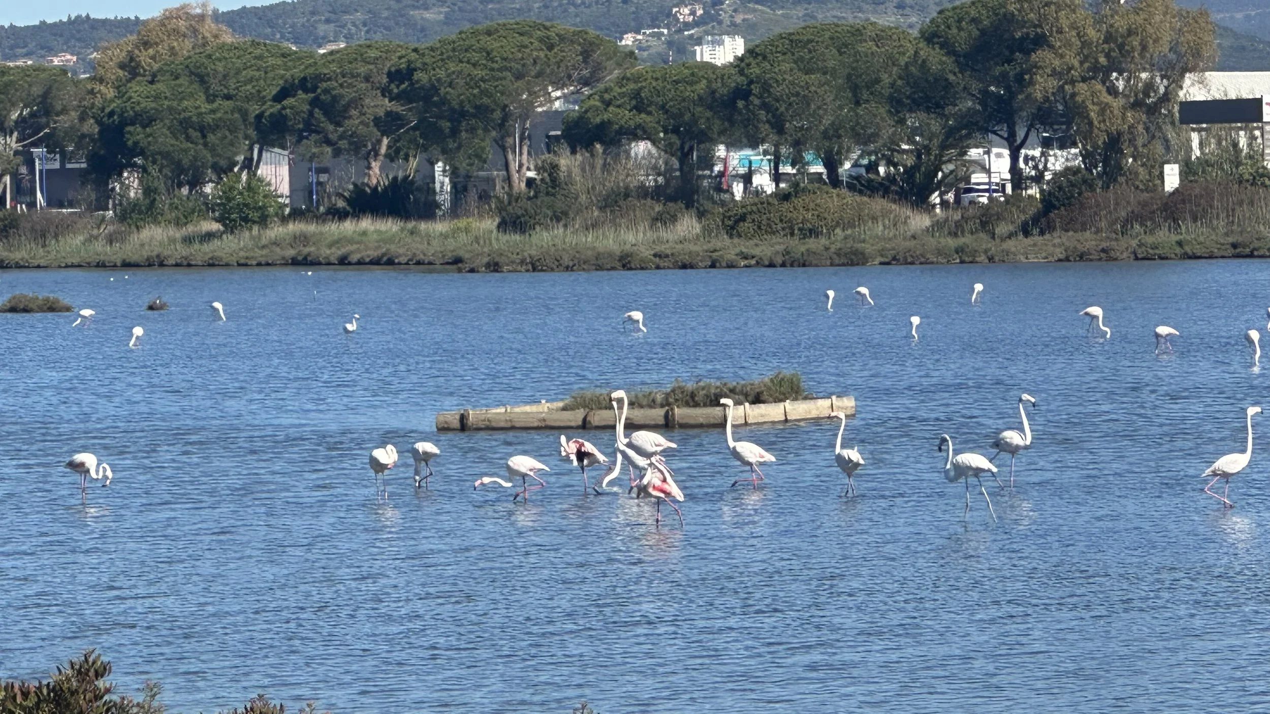 Einmal mehr ein Tag mit blauem Himmel, nach dem Frühstück auf der Terrasse mache ich mich auf den Weg nach Toulon. Praktisch die ganzen 45 km bis ins Zentrum von Toulon kann ich das gleiche Velo Trassee von gestern benutzen. Zuerst geht es über eine Anhöhe in Richtung Hyéres, das Trassee schlängelt sich durch einen Wald mit Eichen und Pinien. Unterhalb von Hyéres folgt die Route längere Zeit dem Strand, diese Gegend kennen wir von verschiedenen Ferien, das erste Mal waren wir 1991 hier, Regula war noch ein Baby. Vorbei am Flughafen, an den ehemaligen Salzbecken, wo sich Flamingos niedergelassen haben bis zu dem berühmten Surferstrand „Plage de Almanarre“. Kurz vor Toulon komme ich durch ein Gebiet mit diversen Baumschulen und Gärtnereien. Unter anderem werden hier im Freiland Pfingstrosen als Schnittblumen produziert.