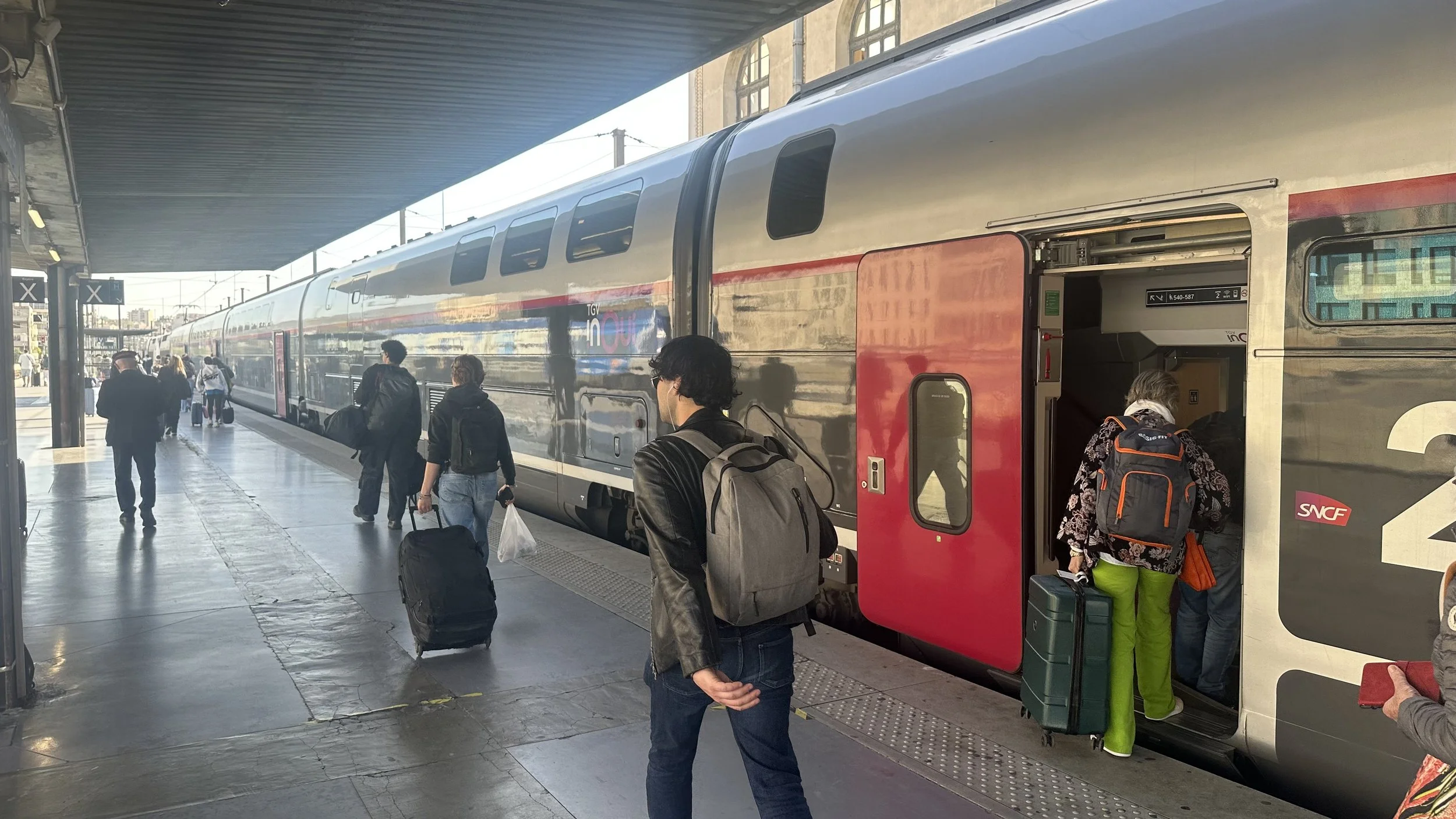 Bus zum Bahnhof, Regionalzug nach Marseille und dann mit dem TGV mit 300 km pro Stunde nach Lyon. Von dort mit dem Zug weiter über Genf nach Hause.