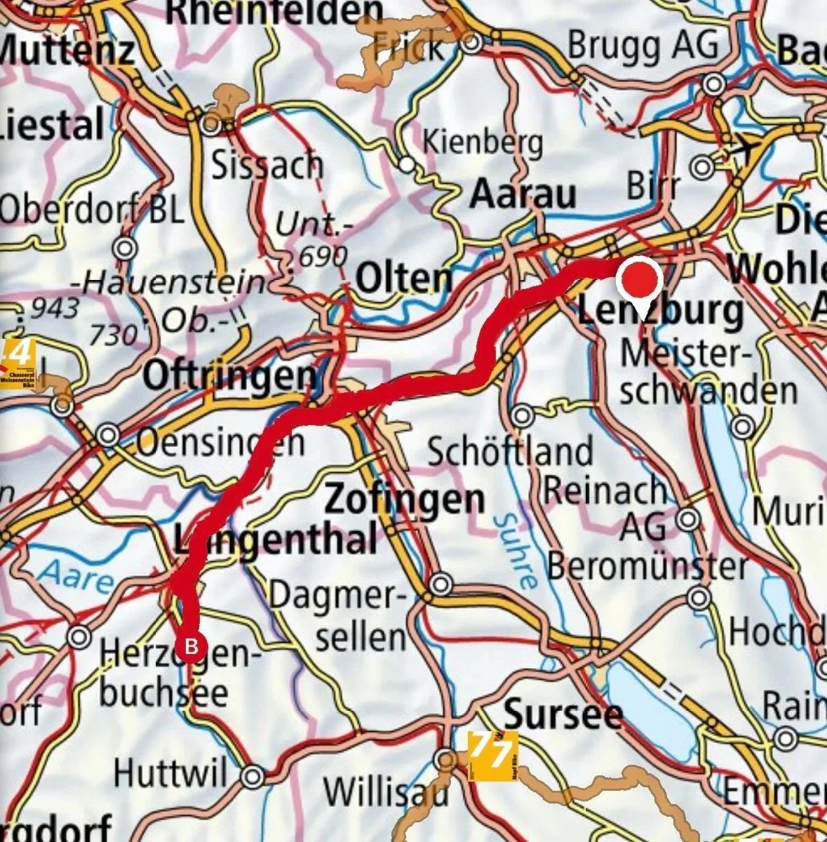 Habe mir vorgenommen die Ausrüstung auszutesten. Am 19.2 startete ich um meine erste Tagesetappe versuchsweise abzufahren. Die Route führte von zu Hause in Richtung Westen über Suhr, Rothrist und Langenthal bis zum Landgasthof Bad Gutenberg in Lotzwil. Am Freitag bin ich die gleiche Strecke wieder zurückgefahren. Das waren zweimal 45 km bei kühlem Wetter, hatte sogar die Chance die Regenbekleidung zu testen. Es hat alles gut funktioniert. Bin aber froh diesen Testlauf gemacht zu haben, kann noch einige Optimierungen vornehmen und muss vor allem noch meine Verpflegung verbessern. Beide Tage war ich ausgepowert, muss mehr trinken und laufend etwas essen.